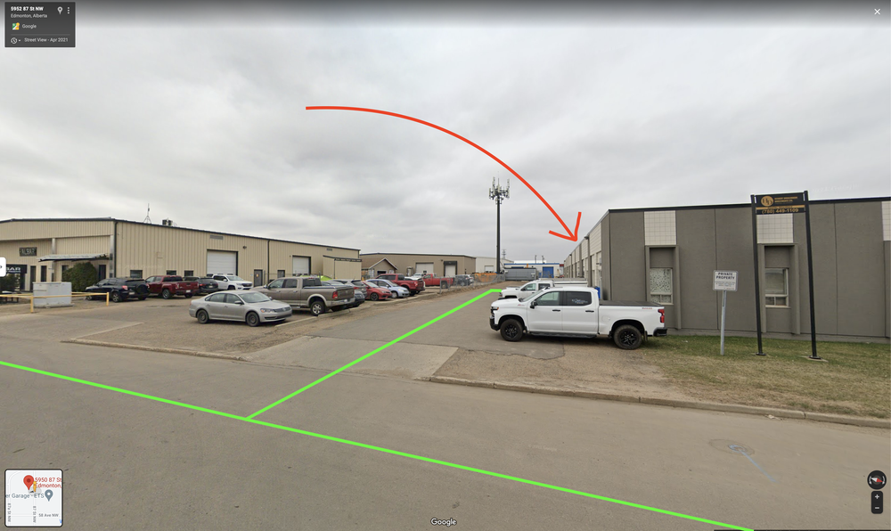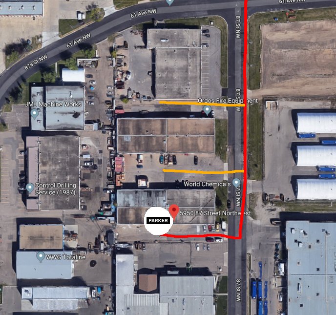 The entrance is JUST north of Halbar Stainless Products